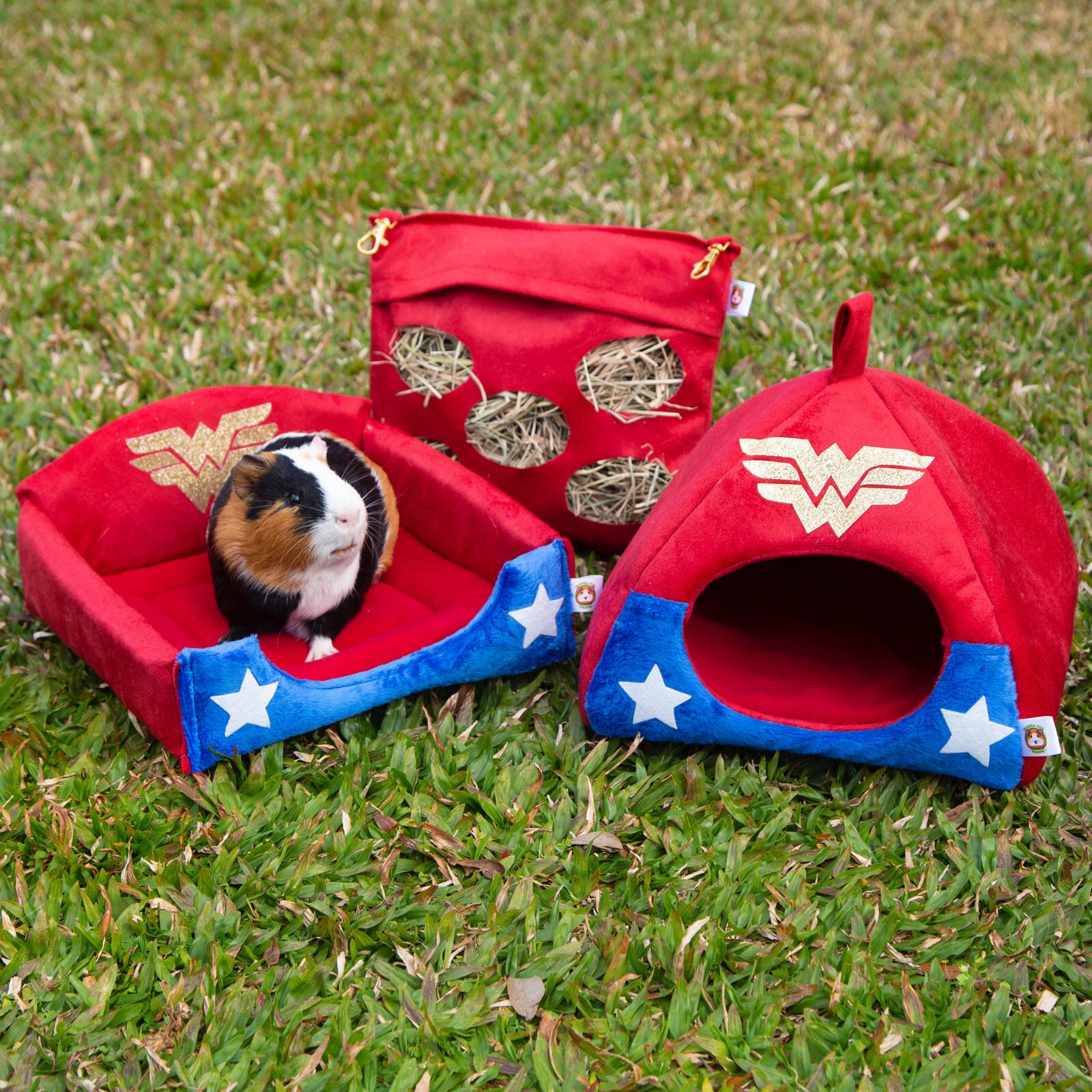 Kit da Mulher Maravilha com 3 peças: caminha, toquinha e porta feno